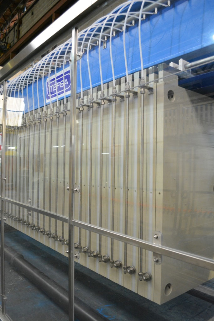 Проверка работы механизма перемещения плит специального исполнения при наладке на заводе Tefsa |